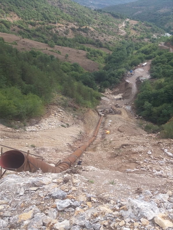 Aybige HES projesi kapsamında: Mermenli Dere suları, 936.00 m talveg kotunda ve 940.00 m kret kotunda yer alan Aybige Regülatörü ile çevrilmekte ve regülatör yapısına tümleşik sol sahilde yer alan yükleme havuzu’na aktarılmaktadır. Yükleme havuzunda depolanan sular 989.055 m (plan uzunluğu: 945.30 m) uzunluğundaki cebri boru ile Aybige HES santral binasında turbinlenmektedir. Cebri boru, Km: 0+259.616 ile Km: 0+700.000 arası açılacak tünel içerisine döşenmiştir. Aybige HES kuyruksuyu seviyesi 730.0 m dir.