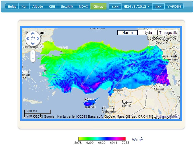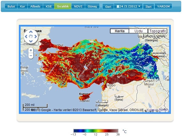 Kısaca UTUVA ismini verdiğimiz “Uydu Tabanlı Ulusal Veri Arşivi” projesi ile hidroloji, tarım, ulaşım, enerji, turizm, meteoroloji vb. gibi birçok disiplinin ihtiyacı olan bulut, karla kaplı alan, albedo, bitki indeksi, kar suyu eşdeğeri, güneş radyasyonu ve yüzey sıcaklığı haritaları gerçek zamanlı ve günlük olarak üretilmekte, 2000 yılından günümüze kadar olan veriler de arşivlenmektedir.